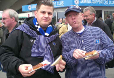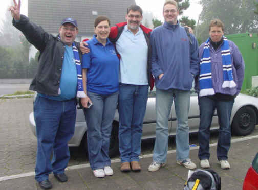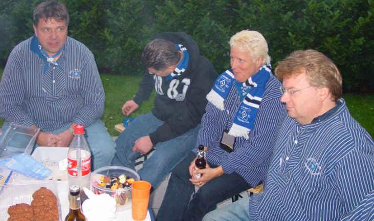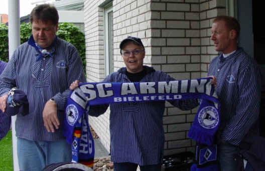 In Bielefeld bei mir zuhause… ...doooch, ein kleiner Tribut an Bielefeld MUSS SEIN!!! Das wäre fast der Hit geworden, hatten uns doch eigentlich in einem Biergarten verabredet. Ich rüste mich fürs Spiel, kommt ein Anruf, wo biste, sind fast vor Deiner Haustür…wenige Minuten später und ich wäre in der Straßenbahn auf dem Weg zum Biergarten gewesen….so kam es zur Begrüßung bei mir daheim… |