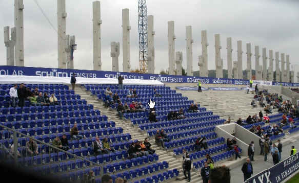 Entweder ist er ein extremer Bielefeld Fan oder hat gar keine Ahnung von Stadionbauten und/oder Fußball. Der Stehplatz-Gästeblock ist einfach eine Zumutung und ich schließe mich allen Gästen und dem Hamburger Fanclub Chosen-Few’s an „das kann nicht ernst sein“; dieser Block liegt fast 2 Meter tiefer als der angrenzende Sitzblock der Gäste. Die „Steher“ können nur noch singen und feiern, vom Spiel geschweige denn Tor sehen die meisten GARNIX, abgesehen davon das man das Gefühl hat in einen Käfig gesperrt zu sein. Bielefeld sollte bedenken das auch die Gäste einen großen Anteil an der Stimmung im Stadion haben und dafür reichlich bezahlen. Man hätte sich gute Beispiele an Stadion wie in Hamburg, Nürnberg und Frankfurt nehmen können. Also Bielefeld, ich hoffe da wird noch gewaltig was geändert. Sonst muss ich auch noch aus dieser Stadt weg ziehen, das ist nur peinlich!!! |