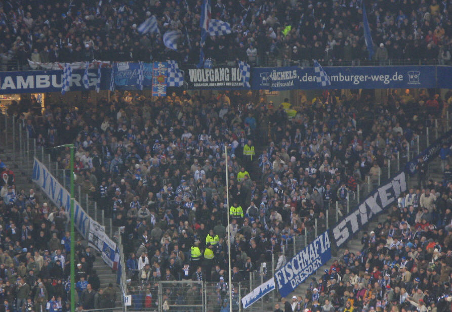 nicht wirklich nett... Auch die "Hooligan"-Rufe gegen die HSV-Fans hatten zur Folge, dass schließlich mit "Sch... Hansa Rostock" geantwortet wurde. |