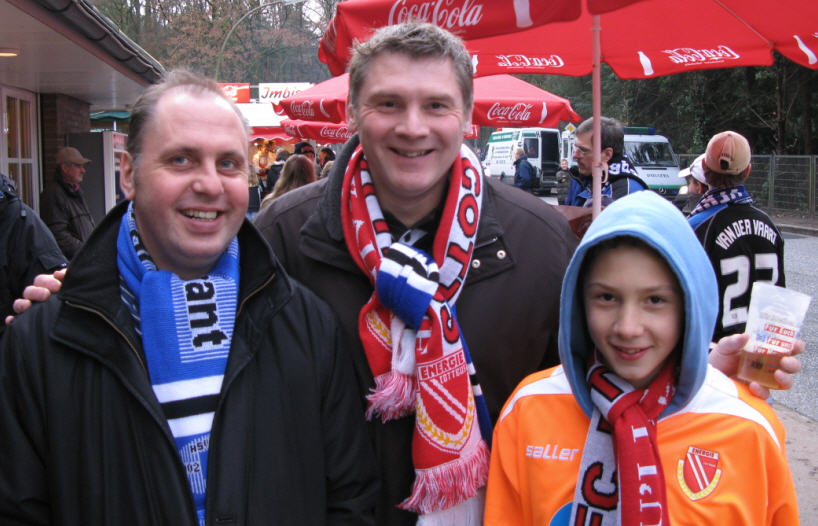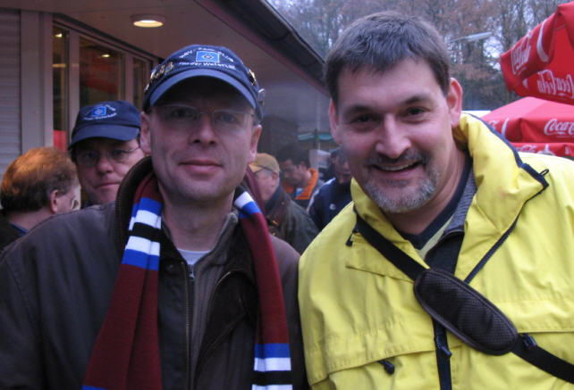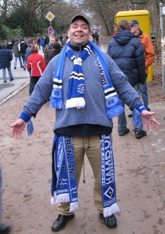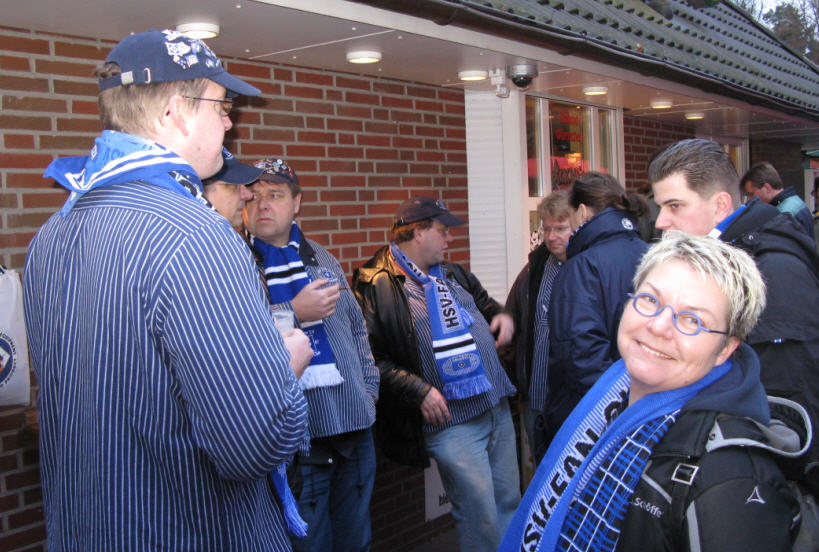 Hurra, hurra, hurra. Dank einer mal fast pünktlichen Bahn treffe ich dieses Mal „nur“ mit 20 Minuten Verspätung in Hamburg ein. Ein letztes Treffen für dieses Jahr am Picknick. Trotz 7 Grad und nasskaltem Klima, sprich Regen, lassen sich die echten Waterkantler (oder sollte man sagen die verrückten??? Okay, bin ja selber dabei J) nicht vom Stadionbesuch abhalten… Optimissmuss lässt grüßen…schafft der HSV es heute wohl auf den 2ten Tabellenplatz??? Bremen spielt in Hannover und die Bayern empfangen Duisburg… könnt was werden.