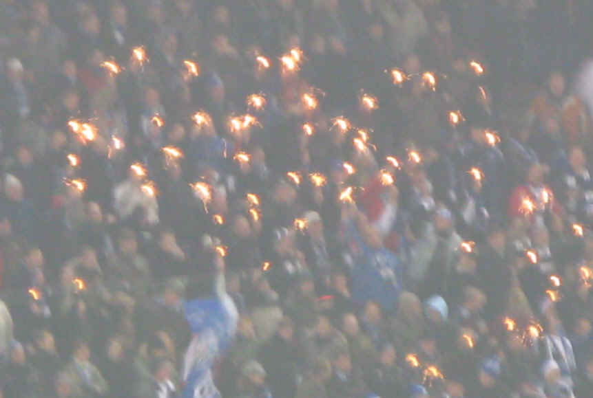 ![]() Die Gästefan - von den Schlachtrufen und ihrem Verhalten im Gästeblock zu urteilen waren mir persönlich doch sehr unsympathisch. Naja, wenn sie auch "FCB" skandieren... :-) |