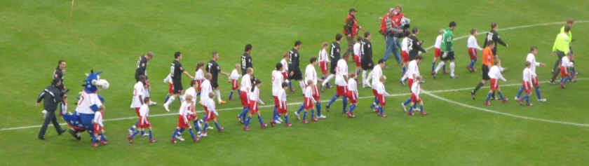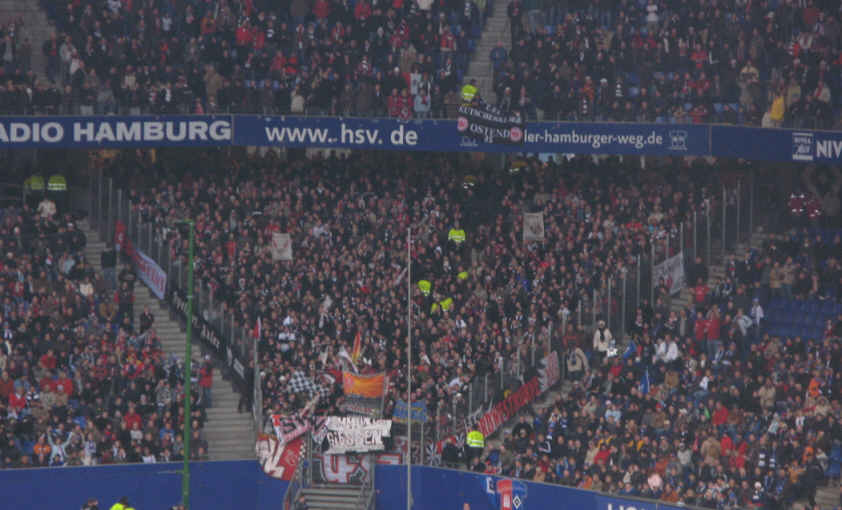 Nachdem wir uns mit Würstchen und Bier auf unsere harte Aufgabe (Marsch zum Stadion bei typisch nasskaltem Hamburger Schmuddelwetter) ausreichend gestärkt hatten ging es Richtung Volkspark. |