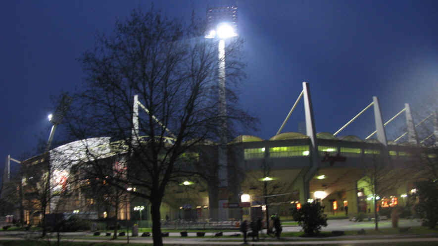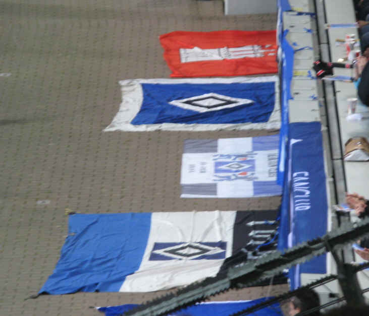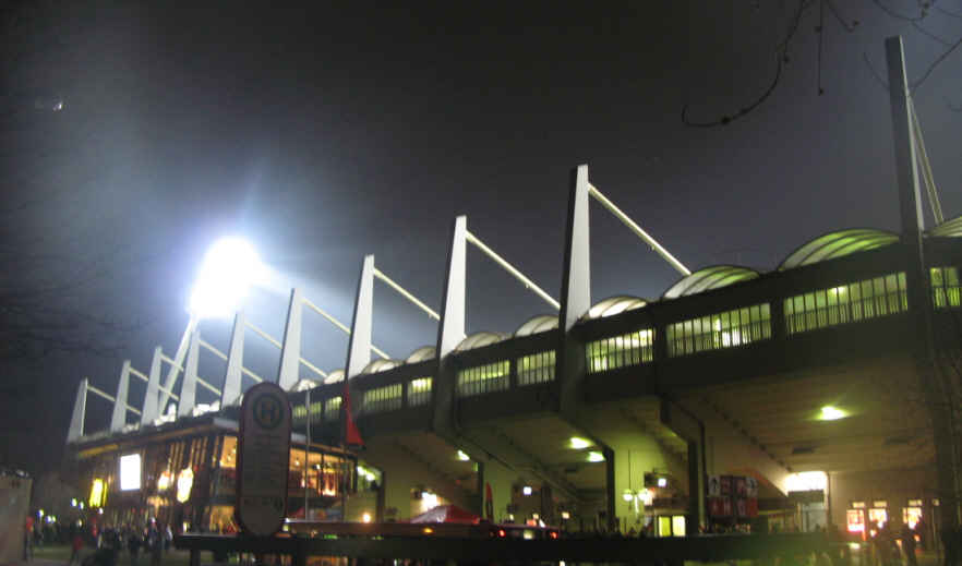 Das Stadion liegt mitten im Wohngebiet. Zum Glück war rechtzeitig vor dem Spiel da, um dort noch einen Parkplatz zu ergattern. Danach ging's erst mal an den Bierstand, um mit HSV-Fans zu klönen. | |||||