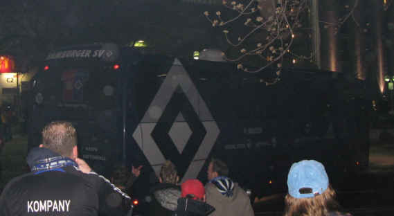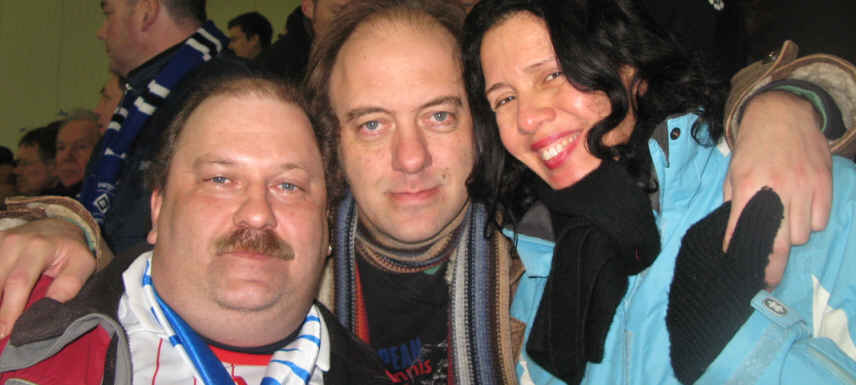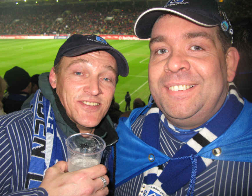 Dirk - links im Bild - ein sehr netter eingeschworener HSV-Fan aus Bonn, den ich bei der Fastnacht in Bonn Beul kennen gelernt habe. Er versucht möglichst jedes HSV-Spiel im Nordwesten zu besuchen. | |||||