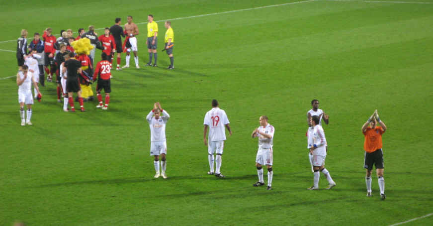 Abpfiff! Einige unserer Helden, die heute wahrlich nicht heldenhaft gespielt haben, verabschieden sich noch noch in den Fankurve. Letzte Woche das Aus im DFB-Pokal und diese Woche das Ende der UEFA-Pokal-Träume??? | |||||