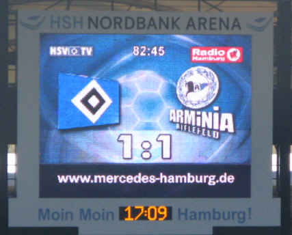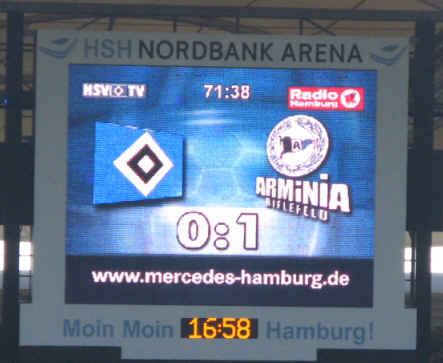 Das Spiel gegen den Abstiegskandidaten aus Ostwestfalen lief fast wie erwartet. Gegen eine dicht gestaffelte Abwehr mühte sich der HSV, glänzte durch ungenaue Pässe und allgemeiner Lustlosigkeit. Konzeptlos wurde der erste Schuss auf's gegnerische Tor erst in der 27. Minute abgegeben! Richtig gejubelt wurde durch die Fans nur bei den Einblendungen der Spielergebnisse der direkten Konkurrenten. Zwischenzeitlich lagen Bayern, Werder und Leverkusen zurück! Es hätte so ein schöner Tag werden können... | |||||