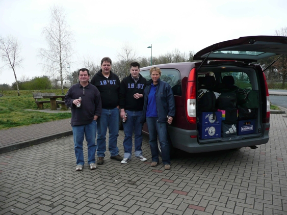 Pünktlich um 11.30 Uhr trafen sich Tammi, Gabi und Stephan Ri. bei Birger und Philip. Nachdem wir den Bus abgeholt hatten, kam es zur Zusammenkunft auf der A7 an der Raststätte "Allertal" mit dem zweiten Bus, inkl. Stephan Re., Gladdi, Sven, Frank, Torben, Piet und Stephan W. | |