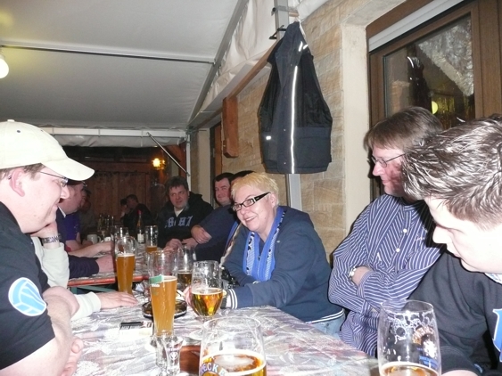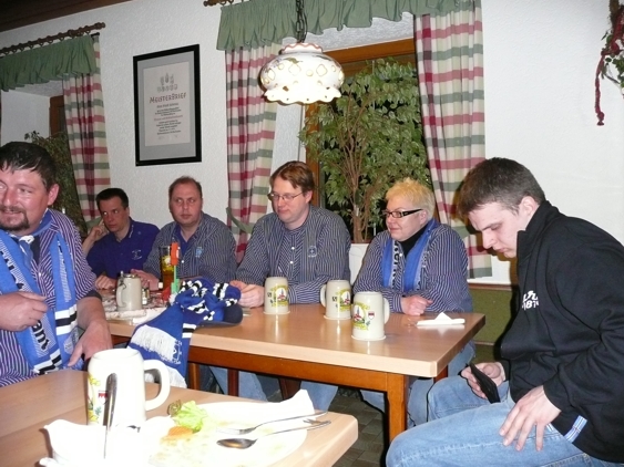Nach der Rückkehr aus Stuttgart trafen wir uns zu einem gemütlichen Beisammensitzen in der "Sonne". Es wurde viel über das verlorene Spiel geredet und man fragte sich, warum wir nicht den Ausgleich geschafft haben. | |