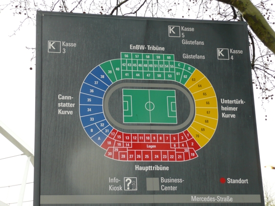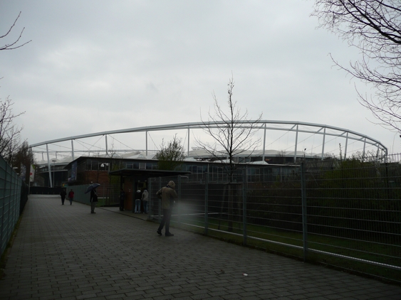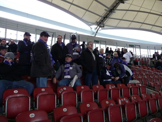 Zur Erklärung: Um von Kasse 4 zum Gästeblock -Kasse 5- zu gelangen, mussten wir einen gefühlten 5 km Marsch um das Stadion wandern. Dort angekommen, stellten wir fest, dass wir lediglich 100m von unserem vorherigen Standort entfernt waren. Die aufgestellten Bauzäune waren zusätzlich noch mit schwarzen Sichtschutz ausgestattet. Wir fragten uns, was das soll ............. | |