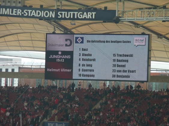 Beide Trainer hatten schon vor dem Spiel Sorgen. Huub Stevens musste auf die gesperrten David Jarolim und Joris Mathijsen verzichten. Zusätzlich fehlten mit Verletzungen Ivica Olic, Miso Brecko und Romeo Castelen. Maxim Choupo-Moting trainerte unter der Woche zwar schon wieder mit dem Team, flog aber nicht mit ins "Ländle". Erstmals wieder im Kader stand hingegen Juan Pablo Sorin. Auf der Gegenseite musste Armin Veh nicht nur seinen Topstürmer Mario Gomez ersetzen, sondern ihm fehlten auch Sami Khedira, Ludovic Magnin und Serdar Tasci. |