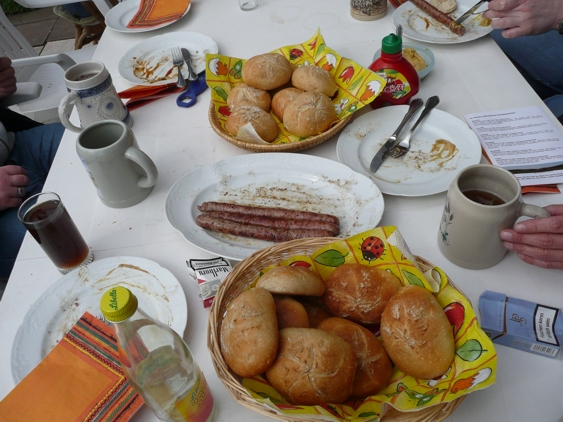 Vor der Heimfahrt lud uns Rainer wie immer zum üblichen Abschiedsgrillen ein mit leckeren Nürnberger Würsten und einem "Sonnen Bräu" ! | |