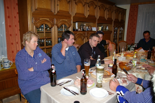 Zurück gab's gegen 2:30 Uhr noch eine kleine Brotzeit bei Rainer ........ mmmmhhh mit lecker Blutwurst, Leberwurst und weiteren frischen Aufschnitt. | |