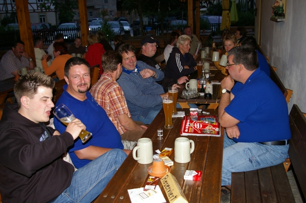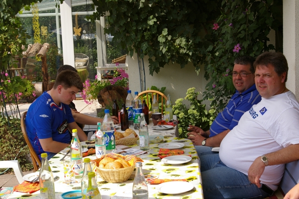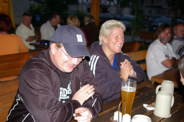 Zurück in Mürsbach hatten wir endlich mal die Gelegenheit in den schönen Biergarten von unserem neuen Fan-Club-Mitglied Ralf zu gehen, um einen geselligen Abend zu verbringen. | |
