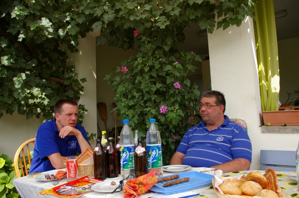 Bei guten sonnigen warmen Wetter grillten wir traditionell zum Abschied bei Rainer, wo es wieder die leckeren fränkische Bratwürstchen gab. | |