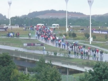 Hier oben genehmigten wir uns noch eine leckere kalte Hopfenkaltschale und pilgerten dann, wie viele andere auch, Richtung Stadion. | |