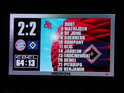 Pfostentreffer (50.) Pech. Umso verdienter war der Ausgleich durch Trochowski per Elfmeter, nachdem Christian Lell Olic attackiert hatte. In der Folgezeit drängten die Bayern, agierten aber oft zu ideenlos und unpräzise, um den HSV, der immer gefährlich blieb, in Verlegenheit zu bringen. |