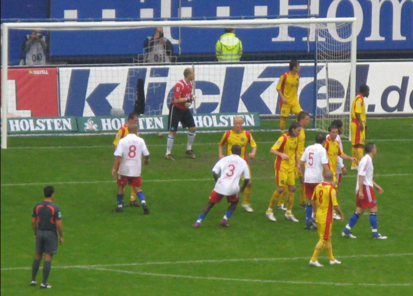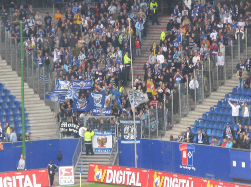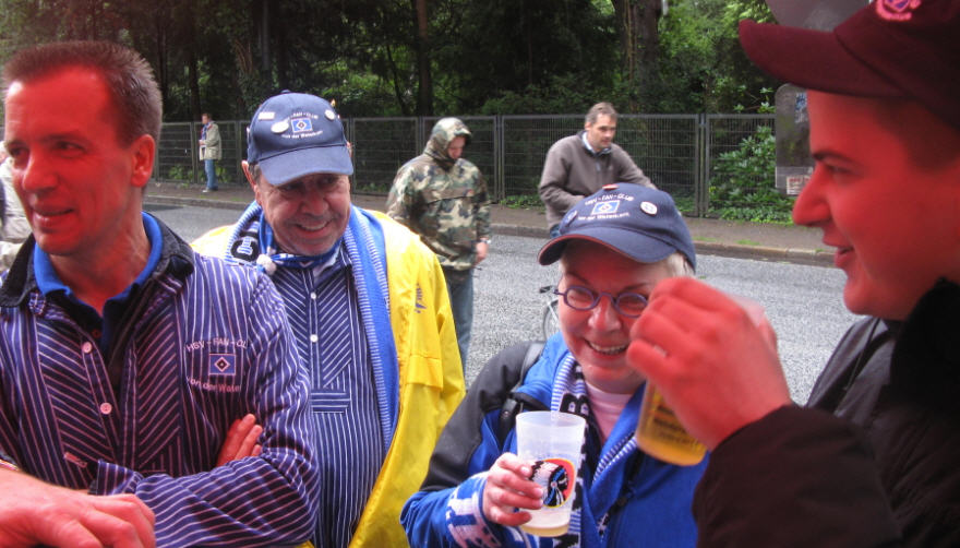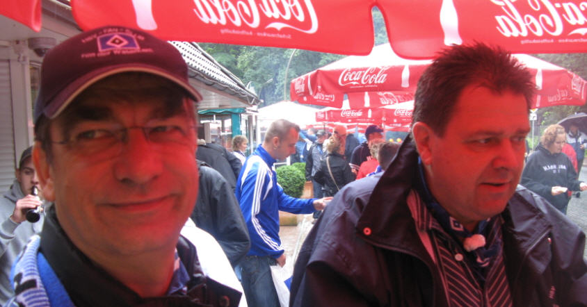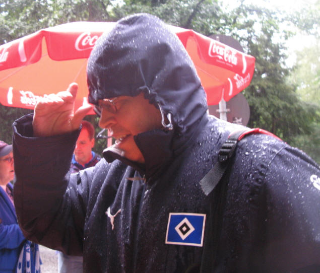 Hamburger Schmuddelwetter zum Heimspielstart in die neue Bundesligasaison. Es war an diesem Wochenende im August nichts spätsommerliches sondern eher frühherbstlich. Trotzdem - oder weil wir es einfach gewohnt sind - waren wir Waterkantler zahlreich beim Treffpunkt erschienen. | |