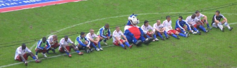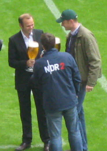 Und auch Lotto & Pape waren trotz des Querelen um die Stadionshow - der HSV hatte einseitig einen bestehenden Vertrag mit Radio Hamburg zugunsten des NDR 2 in der Sommerpause gekündigt - wieder mit von der Partie. |