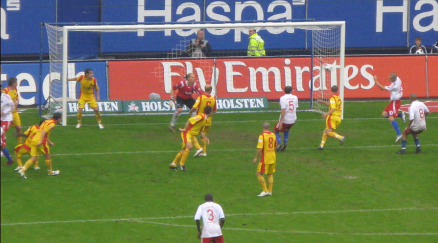 Er beteiligte sich auch gleich mit einem gefährlichen Freistoß. |