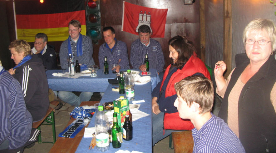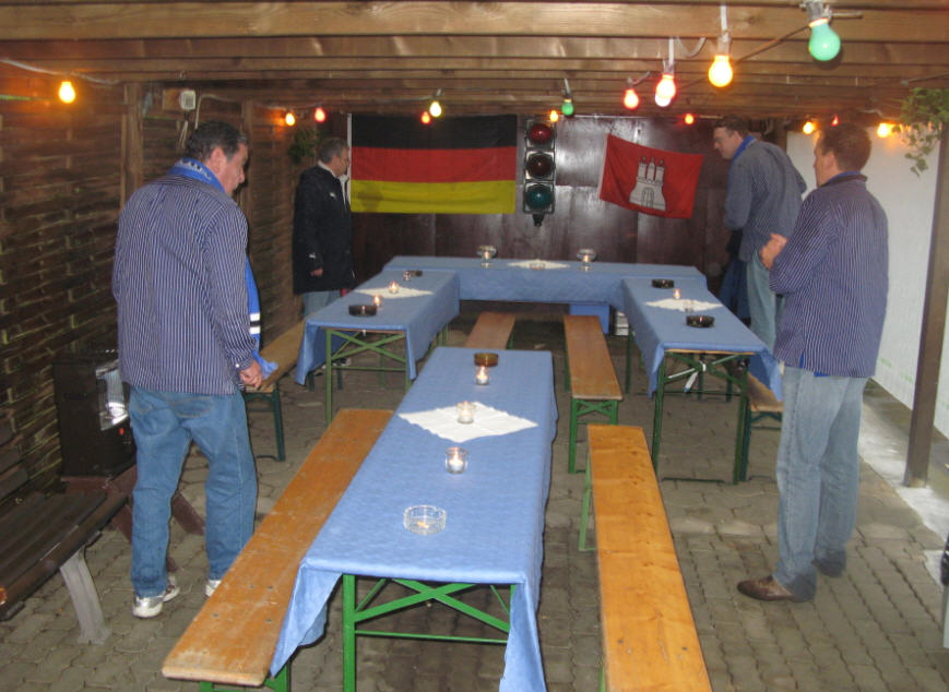 Danach ging es für uns Waterkantler zu unserem Fanclubkollegen Horst, der sein Carport für unsere Saisonauftaktfeier zur Verfügung gestellt hatte. | |