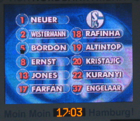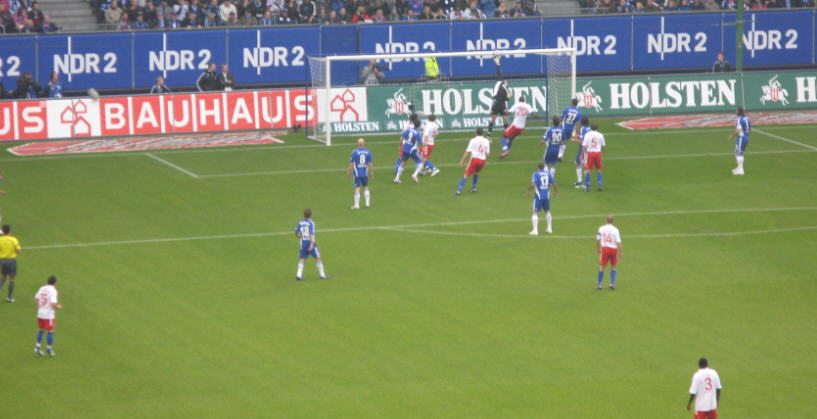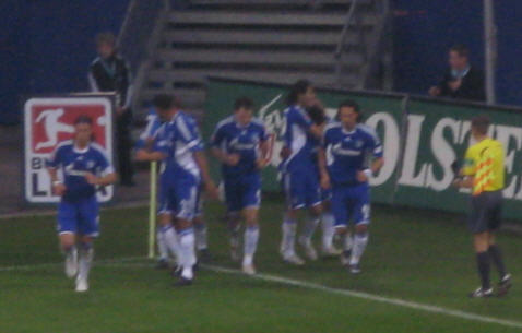 Nach einer halben Stunde war es dann so weit. Abwehrfehler der Schalker, Kapitän Jarolim schaltet am schnellsten und spielt klug auf Trochowski, der von der rechten Seite frei aufs Tor geht und Torwart Neuer keine Chance lässt. | |||