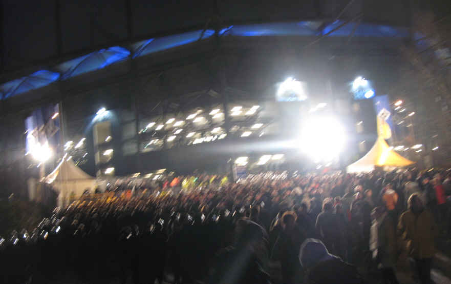 Der Volkspark war bis auf den letzten Platz ausverkauft. Und ich weiß auch diesmal genau, wem dieser letzte Platz gehörte. Neben uns blieb der Platz von Regi aus Bielefeld verwaist, da sie kurzfristig krank geworden war. Gute Besserung von hier! | |||