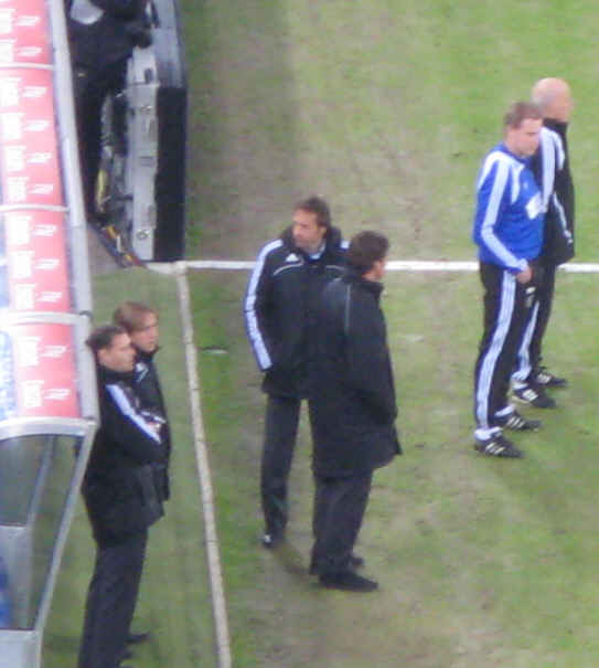 Ganz links Marco van Basten der Gästetrainer. Ob er wohl daran gedacht hat, wie er 1988 im Halbfinale der EM hier im Volkspark mit seinem Tor die Deutsche Fußballnationalmannschaft aus dem Turnier gekickt hat? | ||