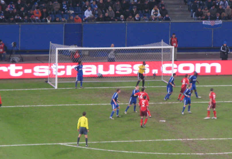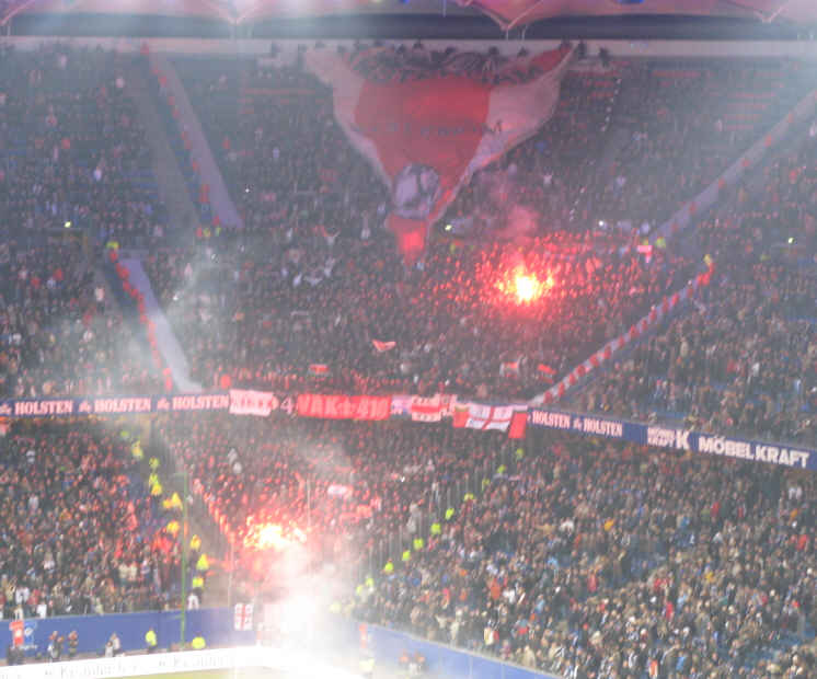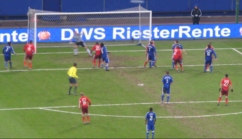 Die zweite Halbzeit... ...erwähneswert noch der Lattenknaller von Guerrero... ...und nach dem Billiardtor (Linker Innenpfosten, rechter Innenpfosten, nachgesetzt und Tor) von Leonardo auf Querpass (!) von Jarolin im Mittelfeld machte die gesamte HSV-Mannschaft in der Standfestigkeit und Geschlossenheit den Eindruck der Deiche in Wilhelmsburg nach der 62er Flut! | |||