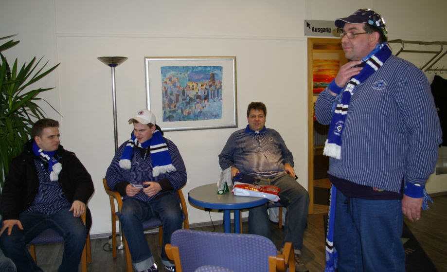 Samstag den 07.02.2009, 5:00 der Wecker klingelt und die Reise zum Auswärtsspiel nach Karlsruhe steht auf dem Programm. Torben, Frank , Henrik und Philipp und ich waren die Unentwegten die den Törn in die Beamtenstadt Karlsruhe auf sich nahmen. Mit einem Frühstück bei MAXI im Autohof Malzfeld wurde die Reise traditionell unterbrochen, problemlos führte das NAVI unseres Chrysler Grand Voyager uns zum Hotel Greif in der Nähe des Karlsruher Hauptbahnhofs.