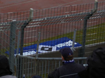 Am Block angekommen schön das Ticket kontrolliert und schon hatten wir es geschafft. Es regnete so muckelig vor sich hin, und wir hatten noch 45 Minuten bis zum Spielbeginn. Unsere Blockfahne die man uns beim Einlass abgenommen hatte erblickten wir auf einem Rasenstück in der Kurve, dort so sie von Niemandem gesehen werden konnte …. Zum Spiel, tja eigentlich ein guter Kick unseres Teams, 2 schöne Tore geschossen, warum wir das Spiel letztendlich verloren haben, weis nur der Fußballgott.