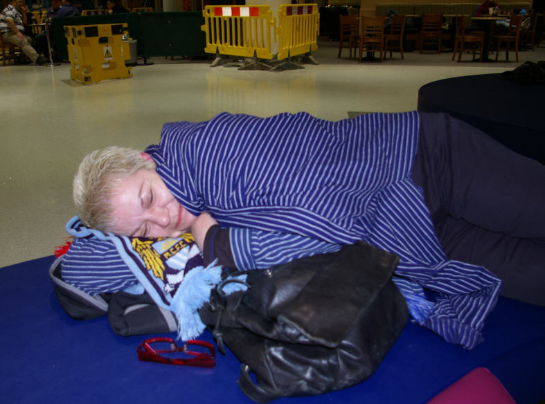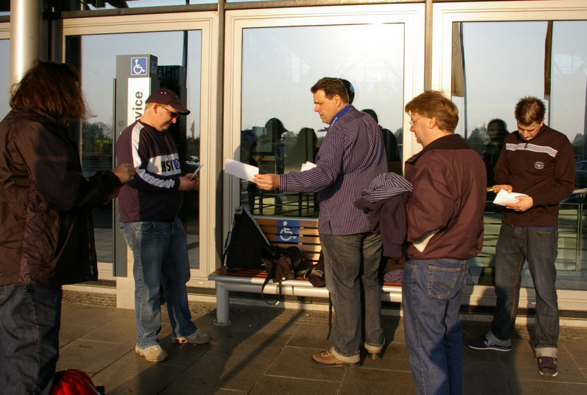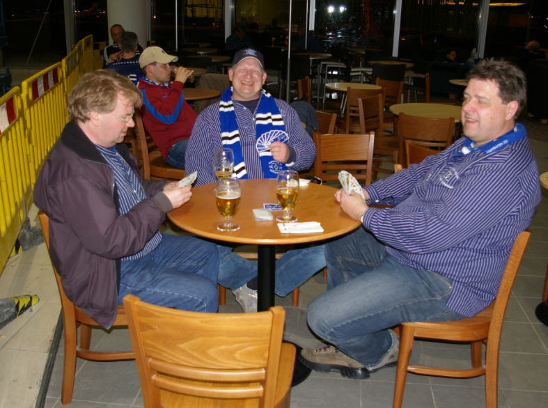 Anschließend ging es nach der üblichen halben Stunde Wartezeit zurück zum Flughafen, auf dem wir ein paar Dosen Carling/Foster leerten, und wo sich mit Skat die Zeit bis zum Abflug vertrieben wurde. |