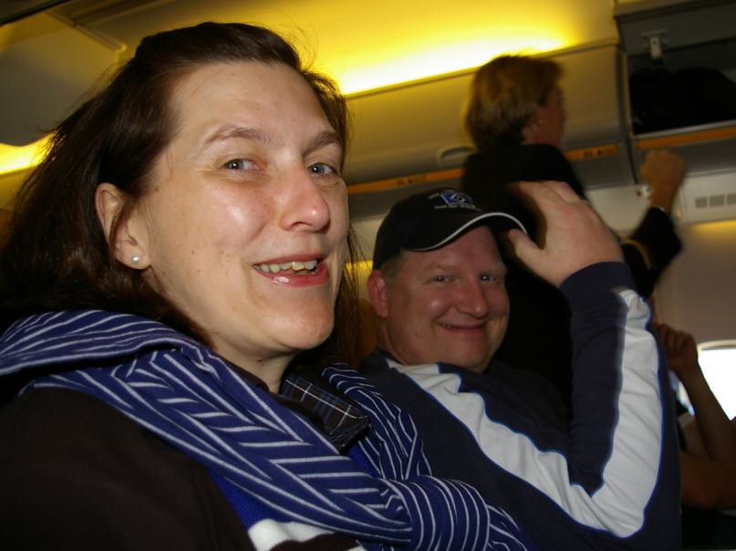 Sechs Waterkantler (Regina, Iris, Philipp, Stephan W., Wolfgang und ich) machen sich auf den Weg per Tagesflieger, ein Charterflieger von CONDOR 757-300 mit 265 Fußball-Fans an Bord. Selbst die Bord-Crew erscheint Fußball verrückt, so witzig und entspannt wurden wir noch nie durch die Luft kutschiert!!!!!! |