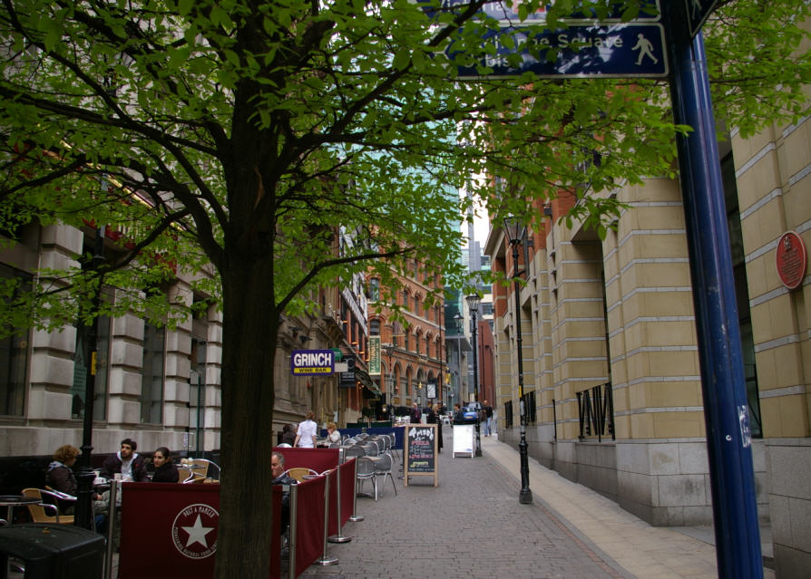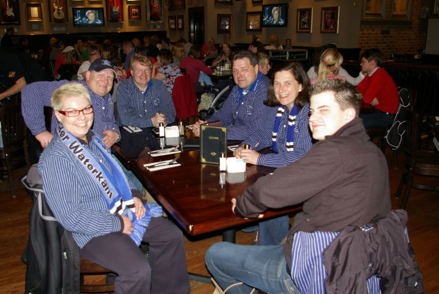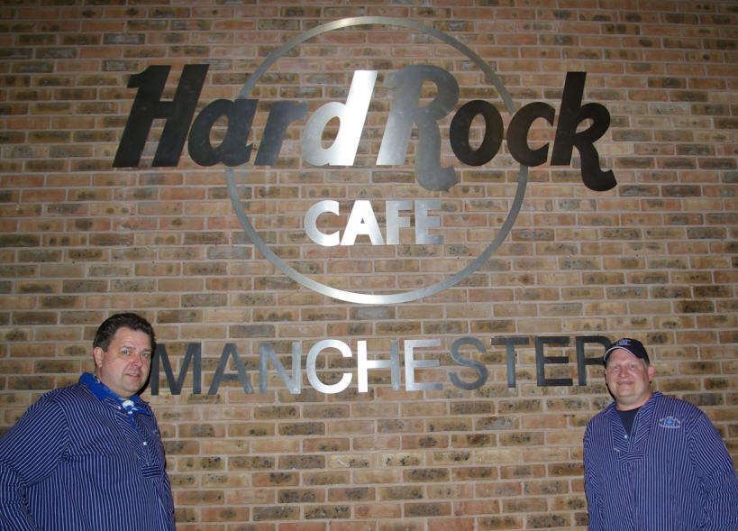 Danach per Straßenbahn zurück in die Innenstadt, ein älterer sehr netter Man City Fan kam mit uns ins Gespräch und zeigte uns freundlicherweise den Weg zum HARD-ROCK CAFE MANCHESTER. | ||