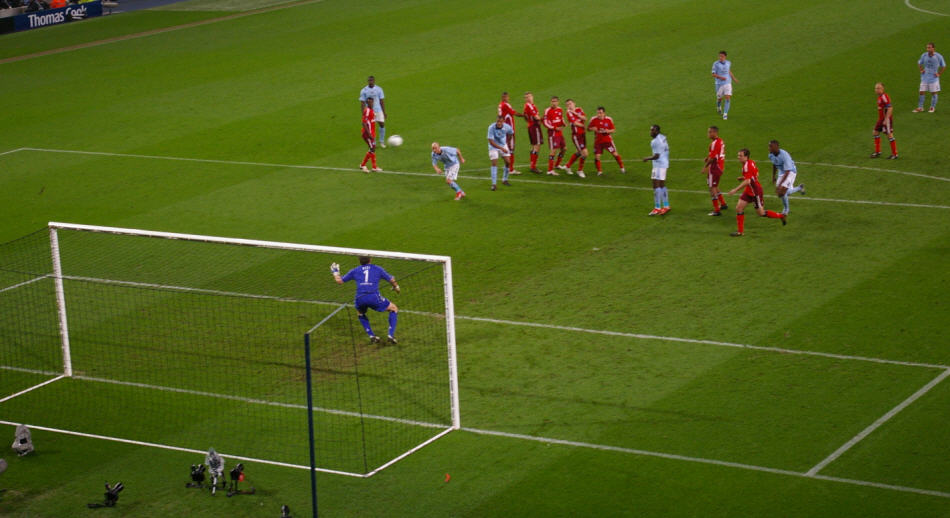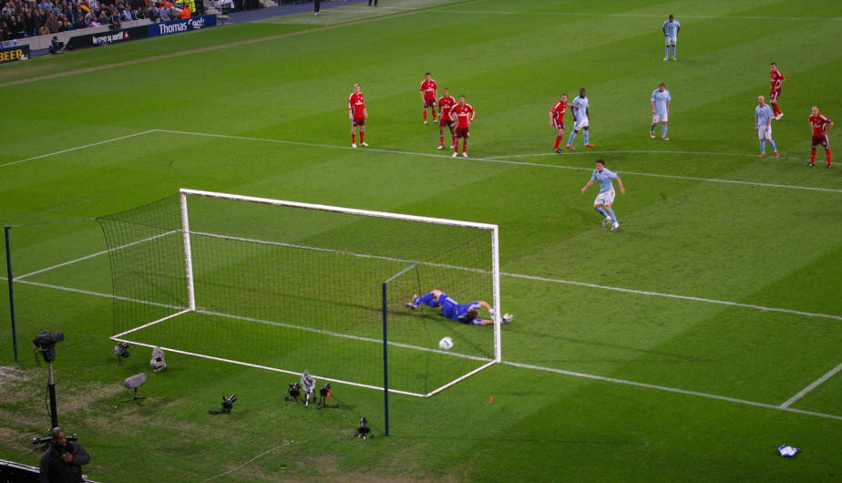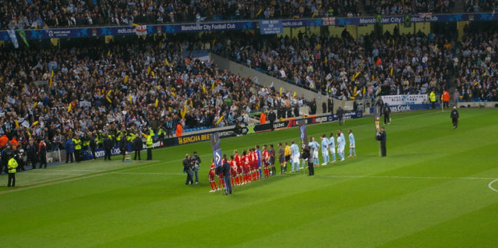 Manchester City zeigte auf der Insel, vor heimischer Kulisse (48.000 Zuschauer ausverkauft, bei Eintrittspriesen von 5 – 10 englischen Pfund) ein ganz anderes Gesicht, das war schon ein irres Spektakel, dass dort abgezogen wurde. Die Man-City Fans schleppen übrigens allerlei Strandartikel mit ins Stadion, Schwimmreifen, Bananen, und auch der ein oder andere „Gummiartikel“ war zu sehen. 90 + 4 und dann war endlich Schluss, der Einzug ins Halbfinale war geschafft, der größte internationale Erfolg seit 26 Jahren!!!!!!!!!!!!!!!!! |