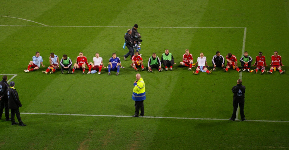 Es folgten, ein Elfmeter auf der Rubrik „schlechter Scherz“ und ein Verteidiger namens Dunne der sich an diesem Abend den Beinamen „der Schlachter von Manchester“ redlich verdient hatte. Erst nach dem fünften brutalen Foul hatte der italienische Schiedsrichter ein einsehen, und zog die überfällige Gelb-Rote Karte. |