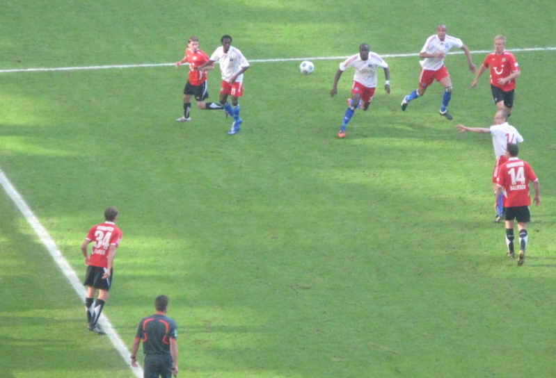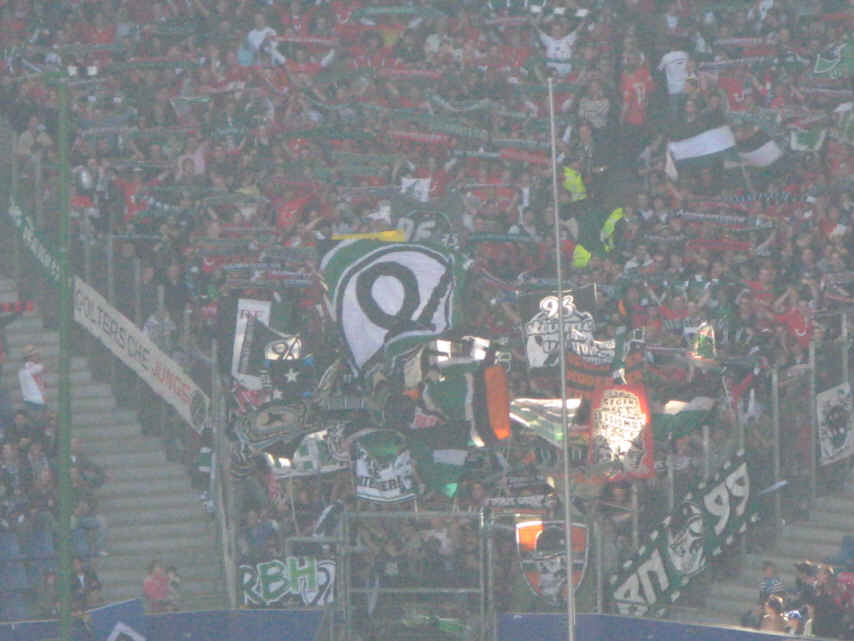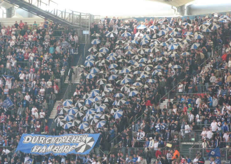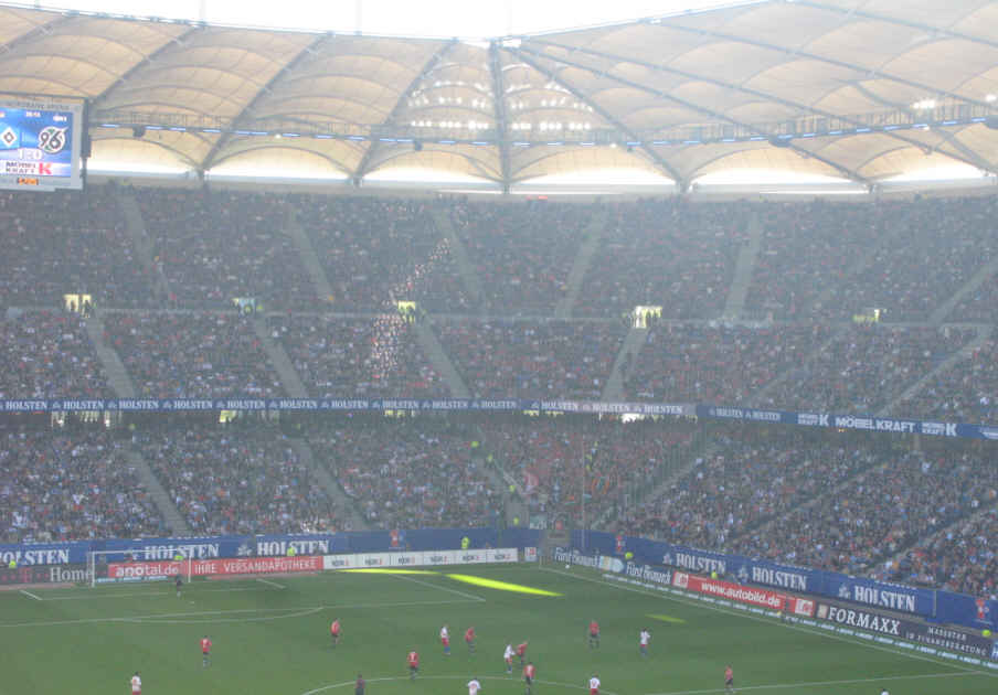 Wie gegen Hannover üblich auch wieder die wechselnden Fangesäge: HSV-Rufe vom Norden wurden mit HSV-Rufen vom Süden beantwortet. | |||