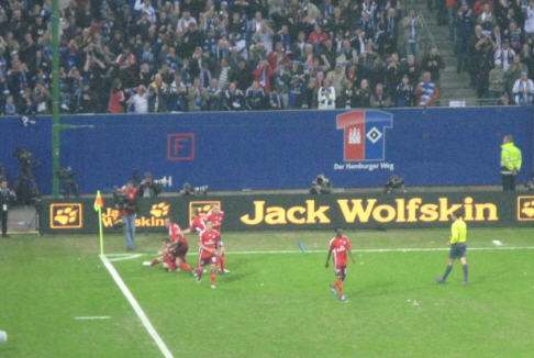 Nun kommen wir zum Spiel. Es war einer der heißesten Abende in unserem Volksparkstadion seit Jahren. Die Stimmung war phänomenal und riss auch jeden objektiven Beobachter mit. Leider hat´s unser Hsv nicht geschafft, die tolle Leistung aus dem Hinspiel zu bestätigen. |