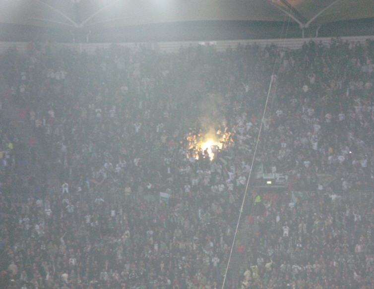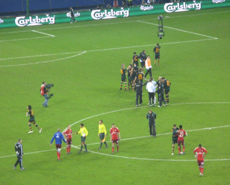 Nach dem Spiel verließen wir ziemlich schnell das Stadion, weil die Entäuschung natürlich riesengroß ist. Und mal wieder wurde nichts aus unseren Titelambitionen, nachdem wir jetzt auch noch das Bundesligaspiel Sonntag durch eine katastrophalen Leistung verloren. |