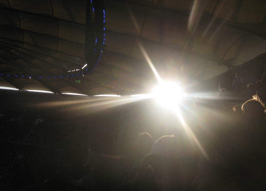 Obwohl es schon nach 20:00 Uhr war, fanden noch die letzten Sonnenstrahlen ihren Weg in die Arena. | |||||||