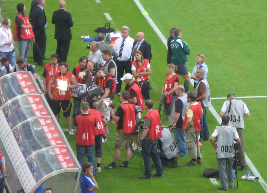 Umlagert von Kameras. Der Coach ist rechts im Bild, das unten ist Gladdie, der sich diesmal das Spiel auch von 28B aus angeguckt hat.
