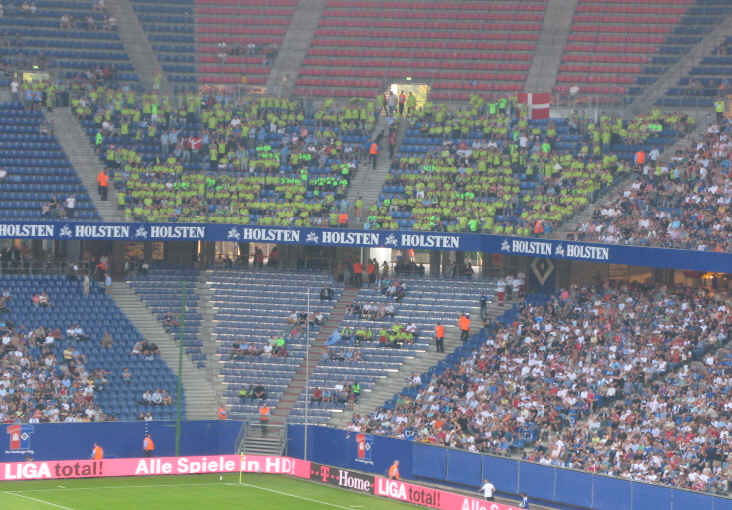 Im Süden hatten wir keine Busladung von neuen Ordnern, sondern das Giftgrün ist die Fa´rbe der Anhänger von Randers FC. | |||
