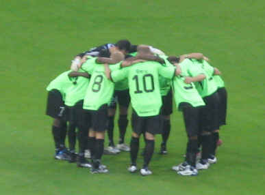 Bei beiden Teams kurz vor dem Anpfiff die obligatorische "Suhuhkontrolle" | |||