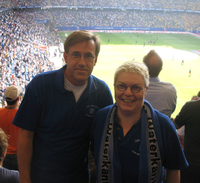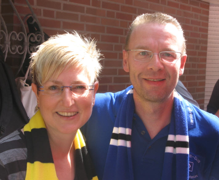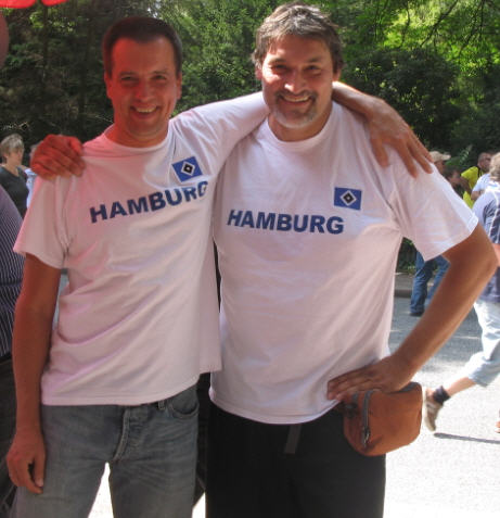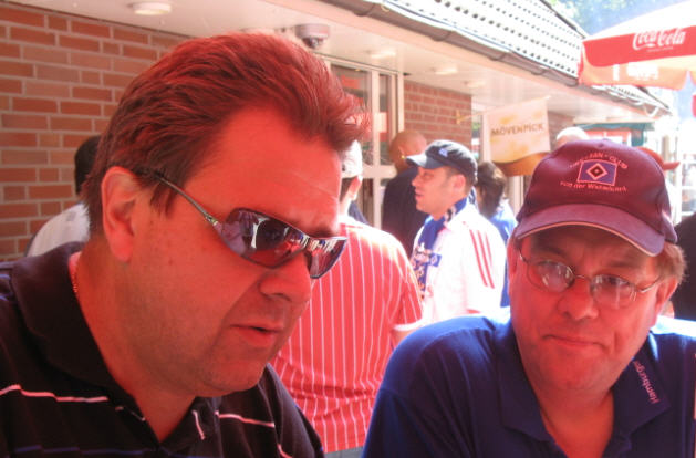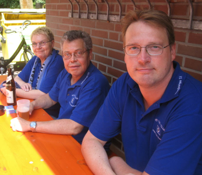Birger - doch etwas geschafft von seiner USA-Reise und Guido und Regi, die sich über ihre neue Dauerkarte in Block 28B freut. | |||