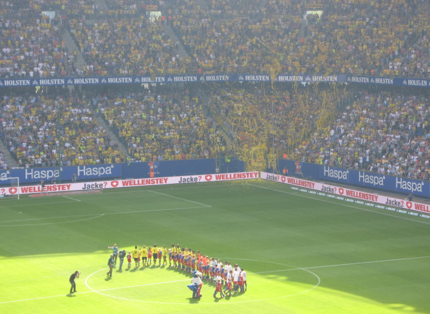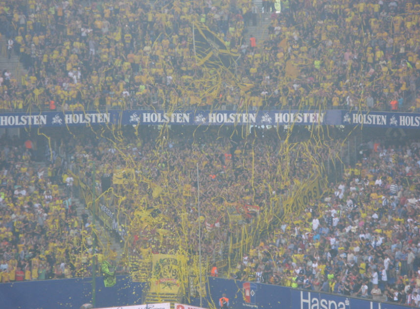 Immer wieder beeindruckend, wie viele Dortmund-Anhänger bei den Auswärtsauftritten ihres Teams den Weg an die Elbe finden. | |||