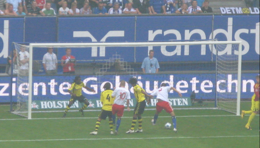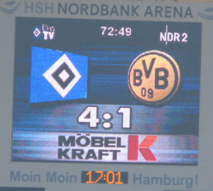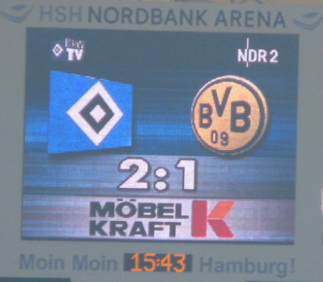 Wir waren alle noch beim Jubeln, da schlug der BVB auch schon zurück. Das 1:0 für den HSV wurde gar nicht angezeigt, sondern gleich das 1:1. |