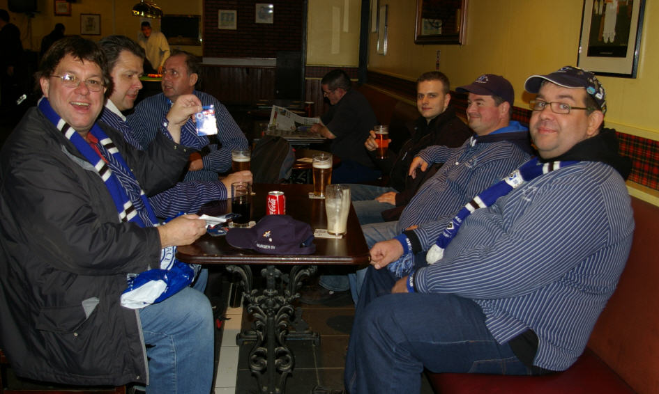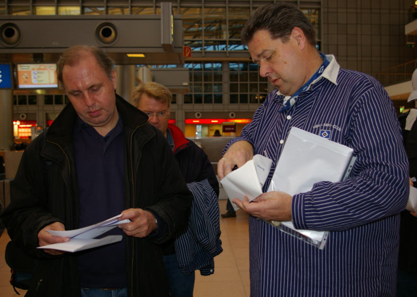 Der Rückweg in die Innenstadt fand unter massiver Polizeibegleitung statt. In der City angekommen feierten wir den Auswärtssieg in einem Pub (anders als in London beim Spiel gegen Arsenal fanden wir mehrere offene Pubs). Der Busshuttle zum Flughafen klappte gut. Zufrieden und ein bisschen erschöpft warteten wir dann auf den Check-In und landeten dann nach einem ruhigen Flug pünktlich in Hamburg bei typischem Hamburger Schmuddelwetter mit Regen. Es war wieder mal eine gelungene Auswärtsfahrt mit tollem Klima in unserer Gruppe und 3 Punkten aus Glasgow! |