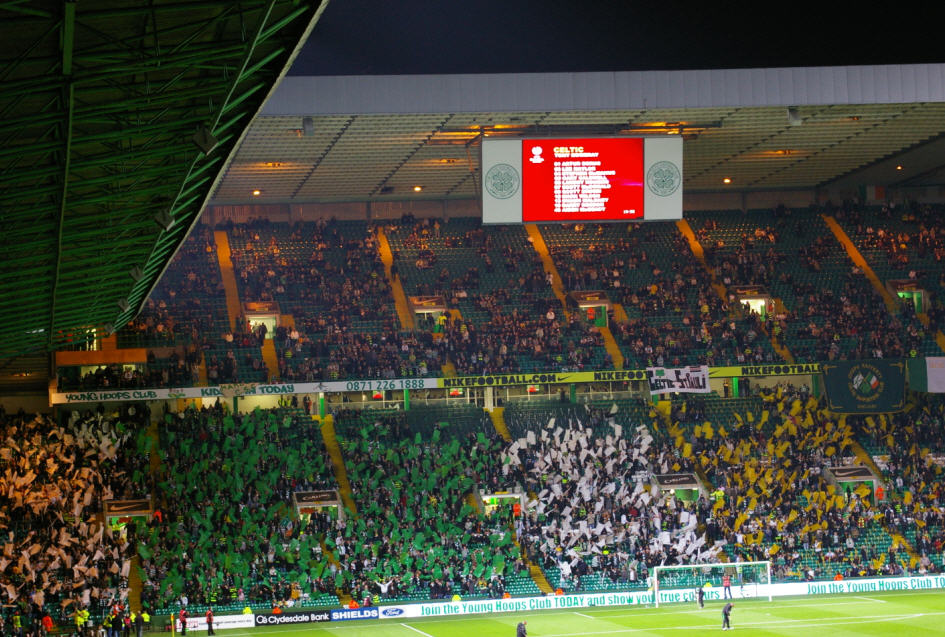 Der vermeintliche Hexenkessel wurde ausschließlich von den Hamburgern gestaltet…die Celtic Fans hielten sich bis auf wenige Ausnahmen sehr bedeckt, konterten auf unser FC Rangers müde mit FC St. Pauli…zu erwähnen ist auch der mit ca 80 Leuten inklusive Flagge vertretende Rangers – HSV Fanclub in unserem Block, witzig. | |||