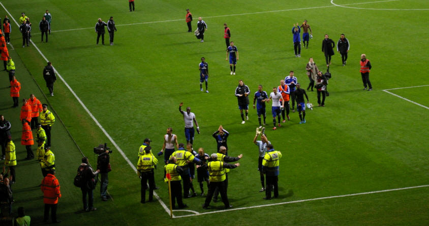 Das Siegtor viel dann nach einer tollen Kombination in der 63.Minute durch Marcus Berg. Am Ende des Spiels kam es dann zu einem noch nie erlebten Eklat: Die Ordner im Stadion verweigerten den Spielern den Zugang zu ihren Fans in die Kurve. Auch Interventionen von Labbadia und Wehmeyer änderten dies nicht. Die Fans nahmen es schlussendlich mit Galgenhumor und feierten die Ordner mit la-ola-Wellen und sangen – als wir das Stadion verlassen durften „wir haben bezahlt und bleiben hier“! |