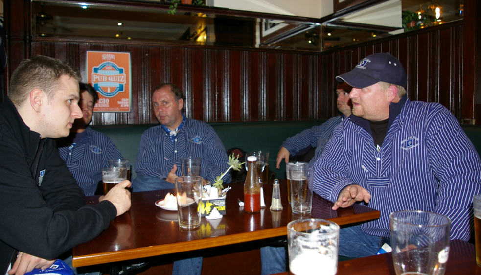 Kleine Erfrischung im urigen Stadion Pub und große Stärkung vor dem Spiel im „Sloane“ in der City. Irgendwie hatten wir die Stunde Zeitunterschied nicht wirklich im Sinn und plötzlich drängte die Zeit sehr. Die 30 Minuten Fußweg zum Stadion, so ca 3 km, waren gefühlte 6 km und echte 50 Minuten zügigen Schrittes. Immerhin waren wir eine halbe Stunde vor Spielbeginn angekommen. | |||
