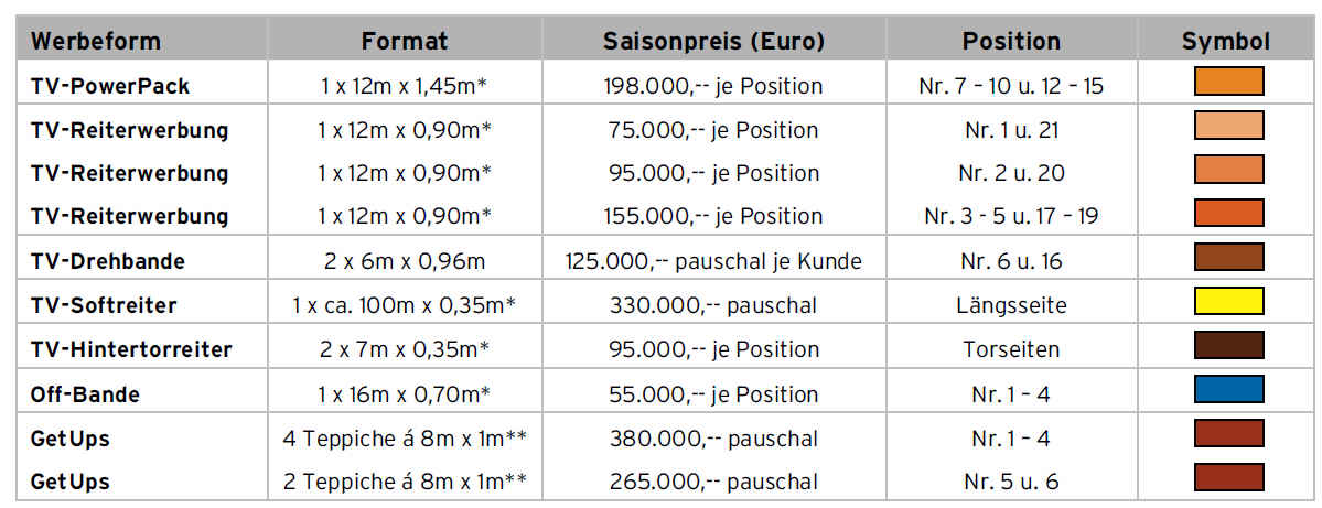 Jeder kann sich nun ausrechnen, wie viel man anlegen muss, wenn man nur für die 17 Heimspiele der Bundesligasaison im Weserstadion werben möchte. |